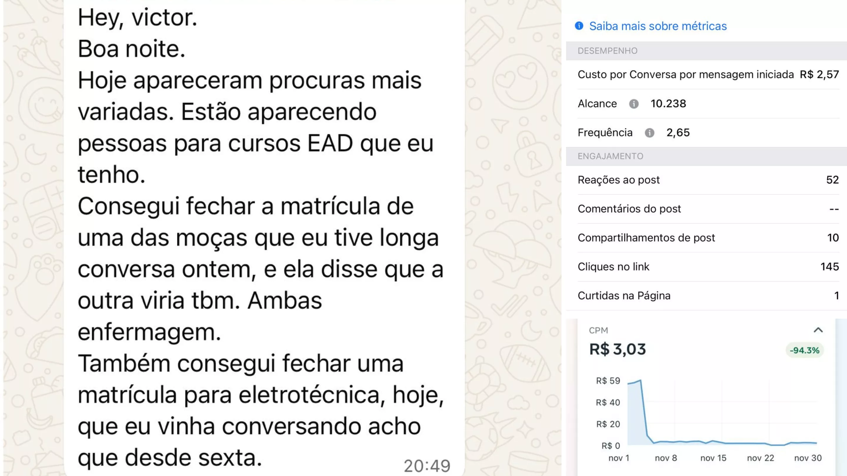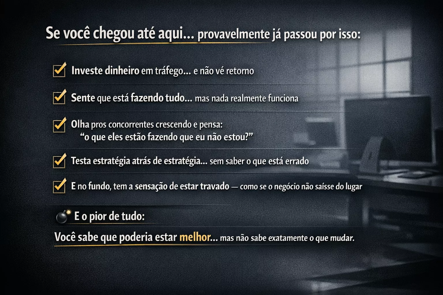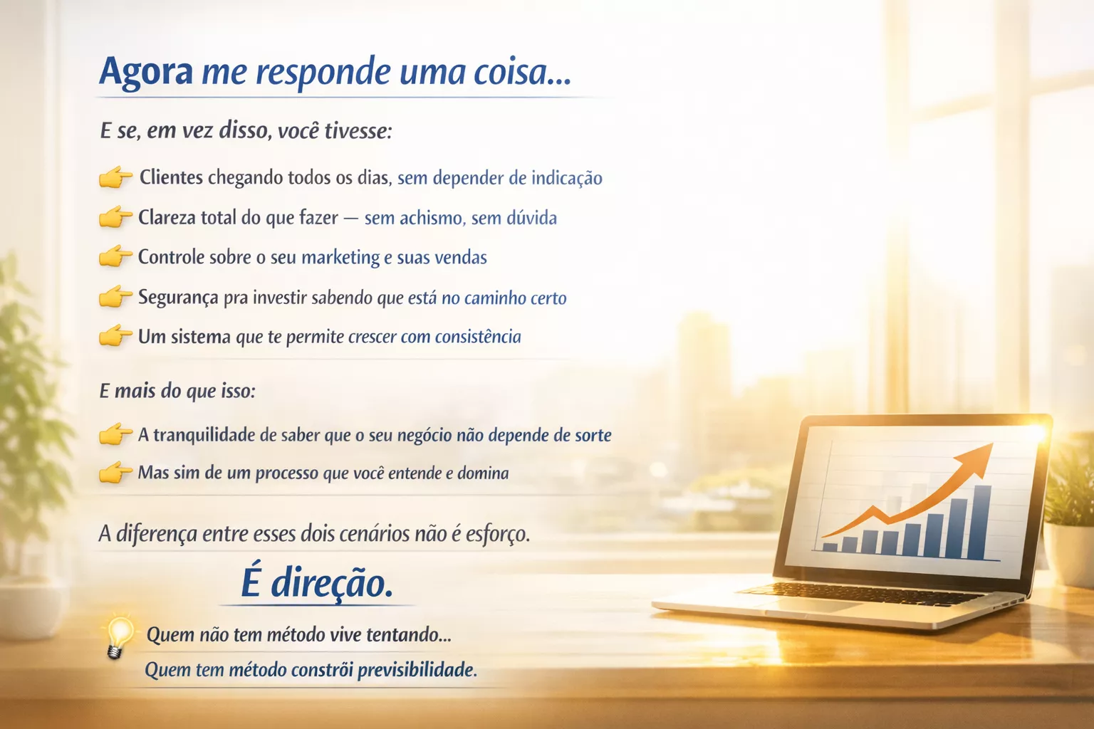 Se você não sabe o que medir, tudo parece dúvida. A maioria dos empreendedores não tem clareza de métricas básicas, e por isso vive no escuro. No Método MCP, você aprende exatamente o que olhar e como interpretar os resultados. Você deixa de “achar” e passa a tomar decisões com base em dados simples. Quando você entende os números, o marketing deixa de ser risco e vira estratégia.