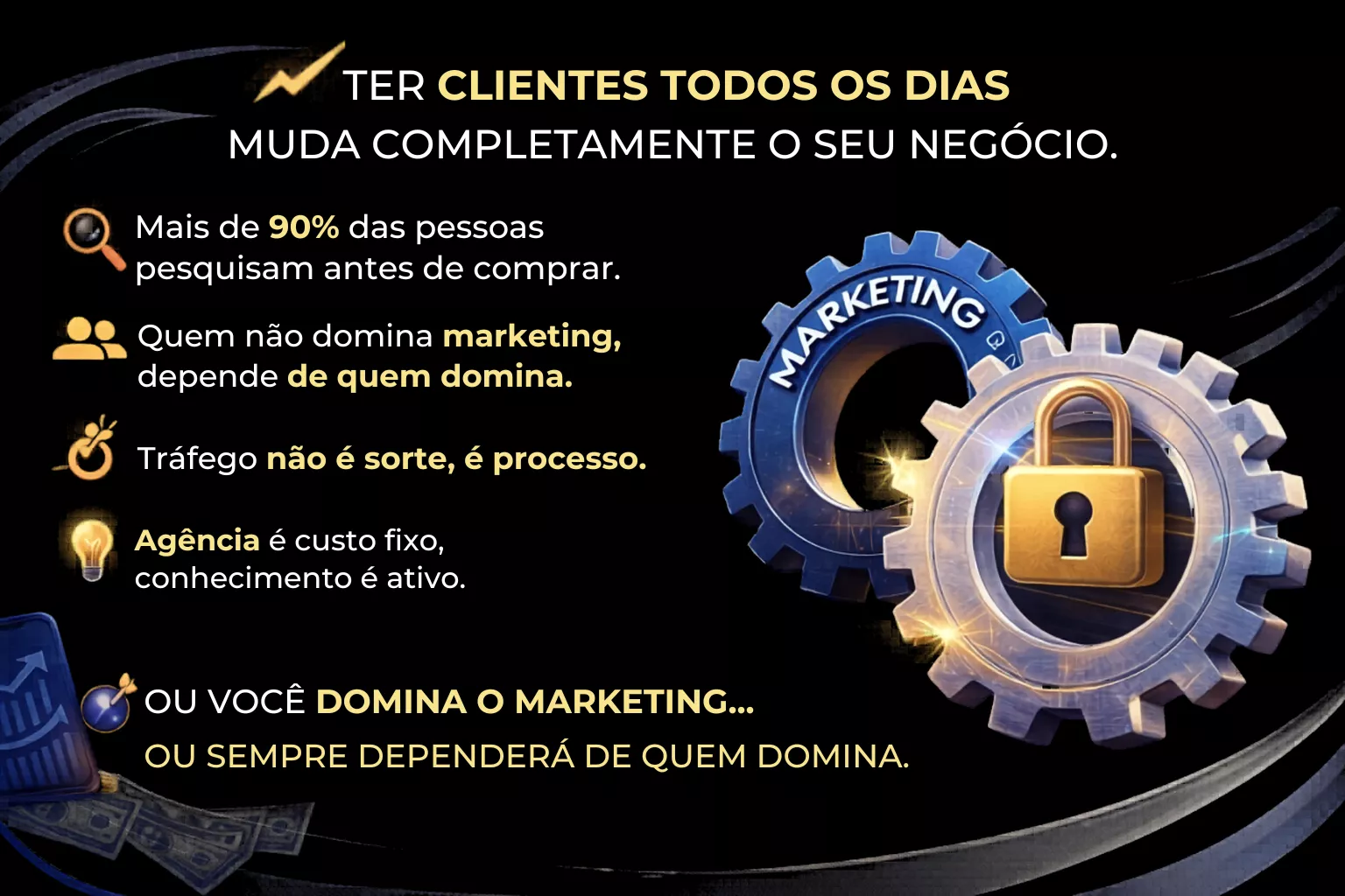 Não é sobre escolher um ou outro, é sobre não ser dependente. Quando você não entende marketing, você fica refém de quem entende. O MCP te dá base para decidir com consciência: fazer sozinho ou contratar com critério. Você pode continuar com agência, a diferença será que você terá controle total das estratégias e poderá executar as suas ideias com mais facilidade. O problema nunca foi contratar… foi não entender o que está sendo feito e não ter como contribuir para ter ainda mais resultado. Afinal, o maior estrategista do seu negócio é você. As melhores ideias são suas, e isso precisa ser executado no marketing para obter os melhores resultados. Suas ideias são as mais valiosas.